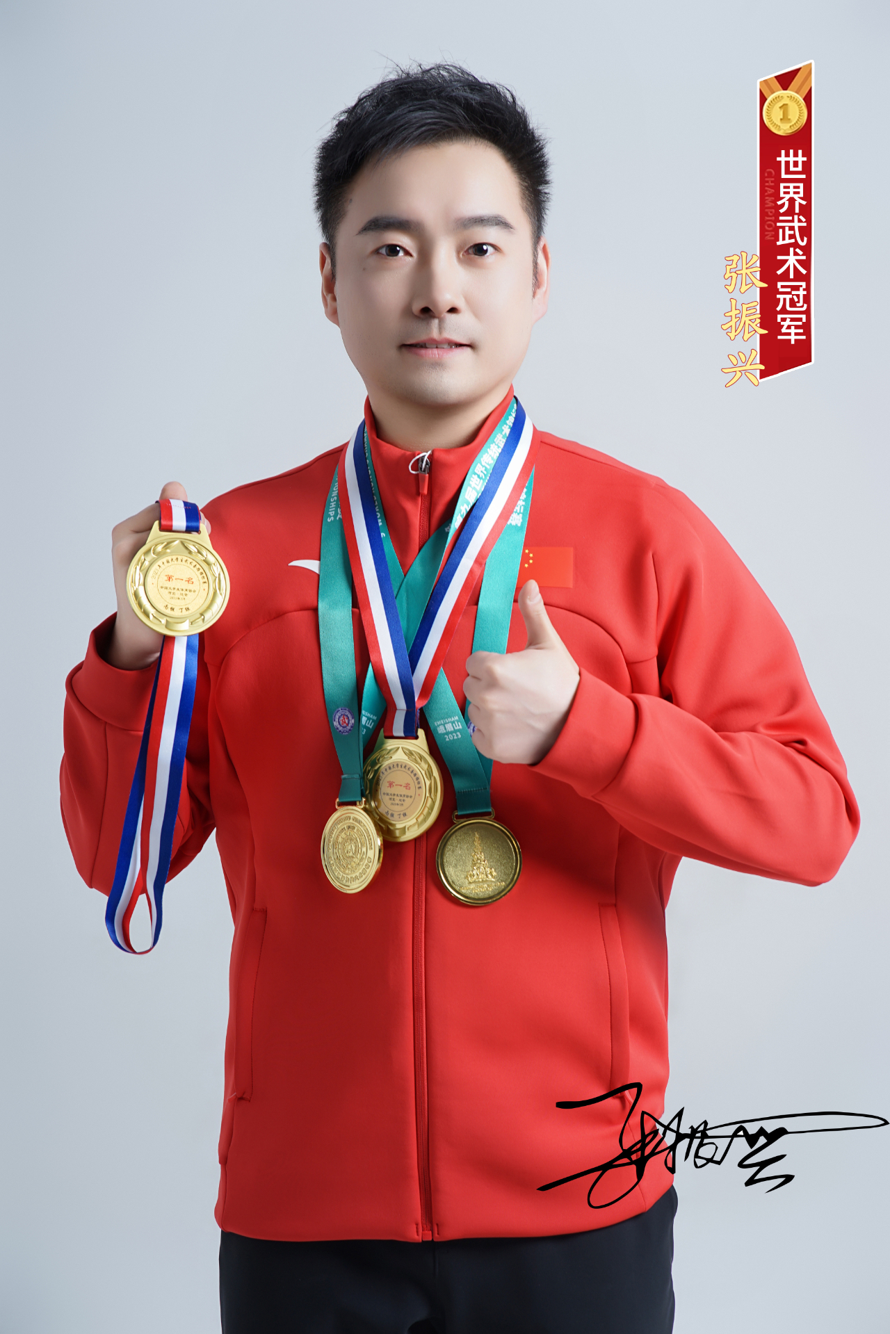 現役世界冠軍張振興,中共黨員,2018年被國家體育總局授予:中華人民共和國體育運動最高榮譽獎章。同年被中央電視臺春節聯歡晚會邀請參加武術節目擔任主角。2019年全國第十一屆少數民族傳統體育運動會首金獲得者,同年榮獲河南省人民政府嘉獎;2019年榮獲河南?。ǜ袆又性┠甓仁呀逃宋锓Q號,成為新一代陳氏太極拳傳承人,現任河南省太極拳隊教練。大滿貫獲得者,國際級運動健將,世界武術錦標賽雙料冠軍,蟬聯全國武術套路冠軍賽陳式太極拳項目11連冠。共獲得世界錦標賽冠軍2次,亞洲冠軍2次,全國冠軍50余次,多次參加中國武術代表團出訪多個國家,傳播中國傳統文化。